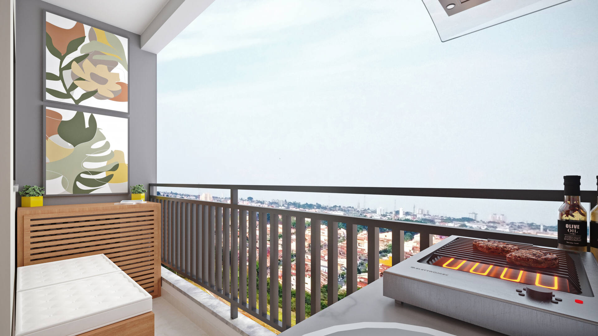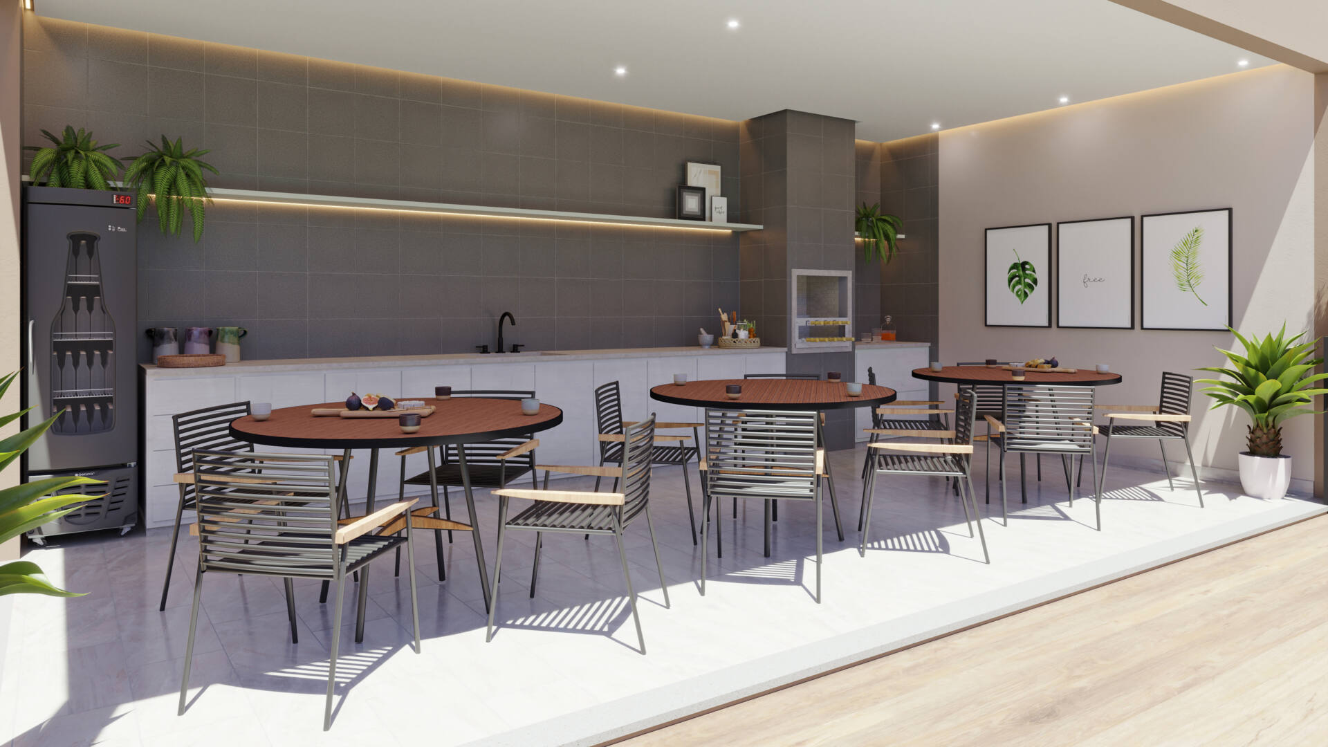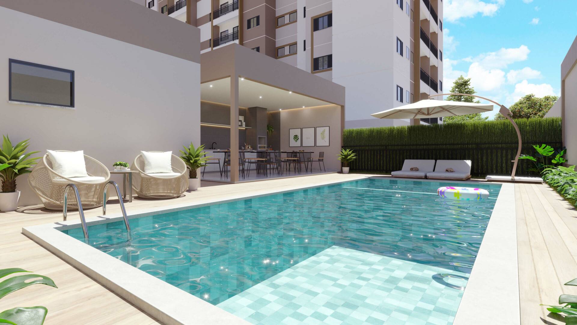 Os apartamentos de 55m² e 56m² possibilitam plantas de 2 dormitórios, sendo 1 suíte, varanda gourmet já equipada com churrasqueira a gás e bancada, além da opção de 2 vagas de garagem e 2 elevadores. Sem contar a quantidade de lazer no térreo para toda a família: playground, pet place, academia, salão de festas, lounge, piscinas adulto e infantil e área gourmet para churrasco.
