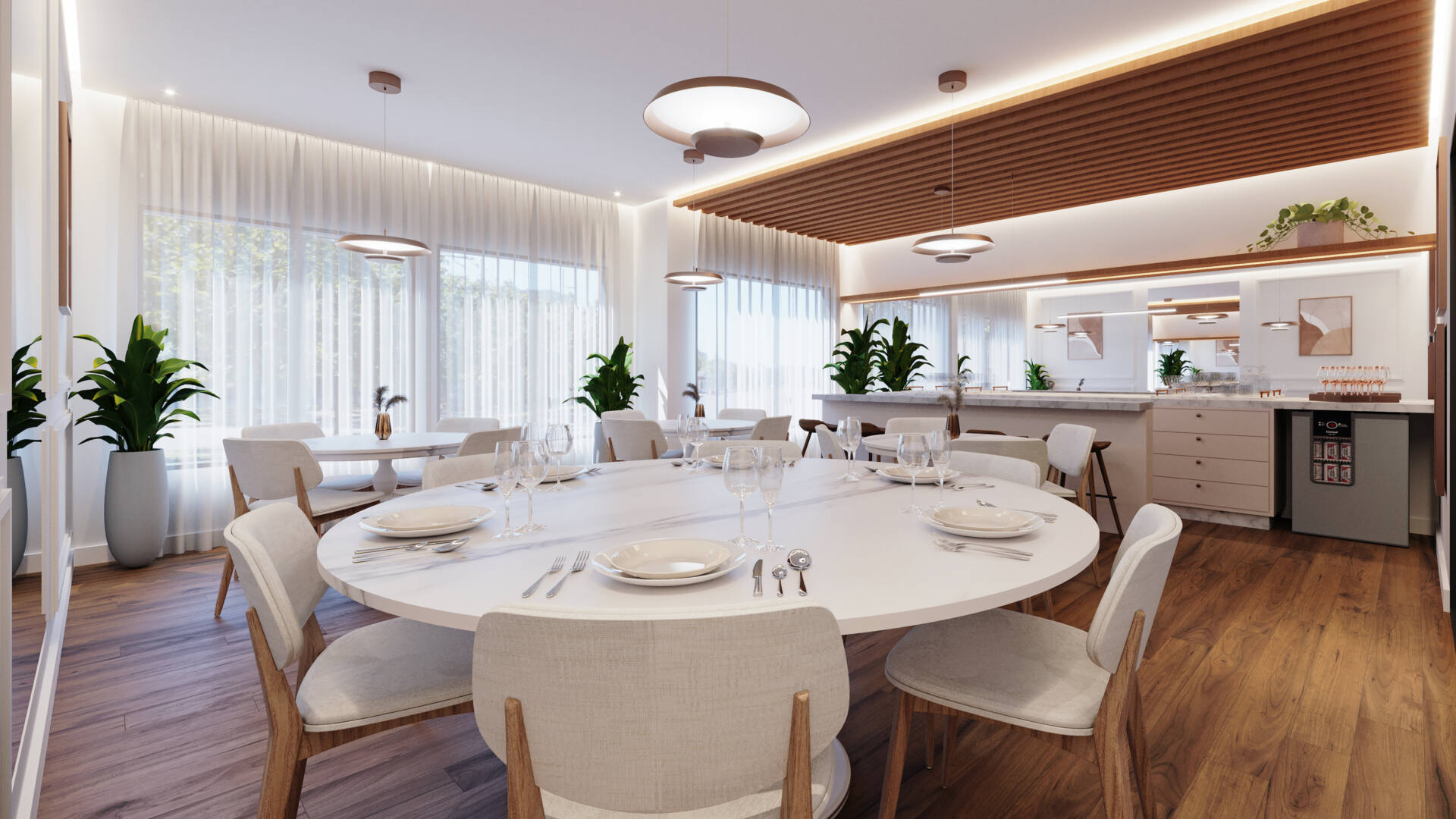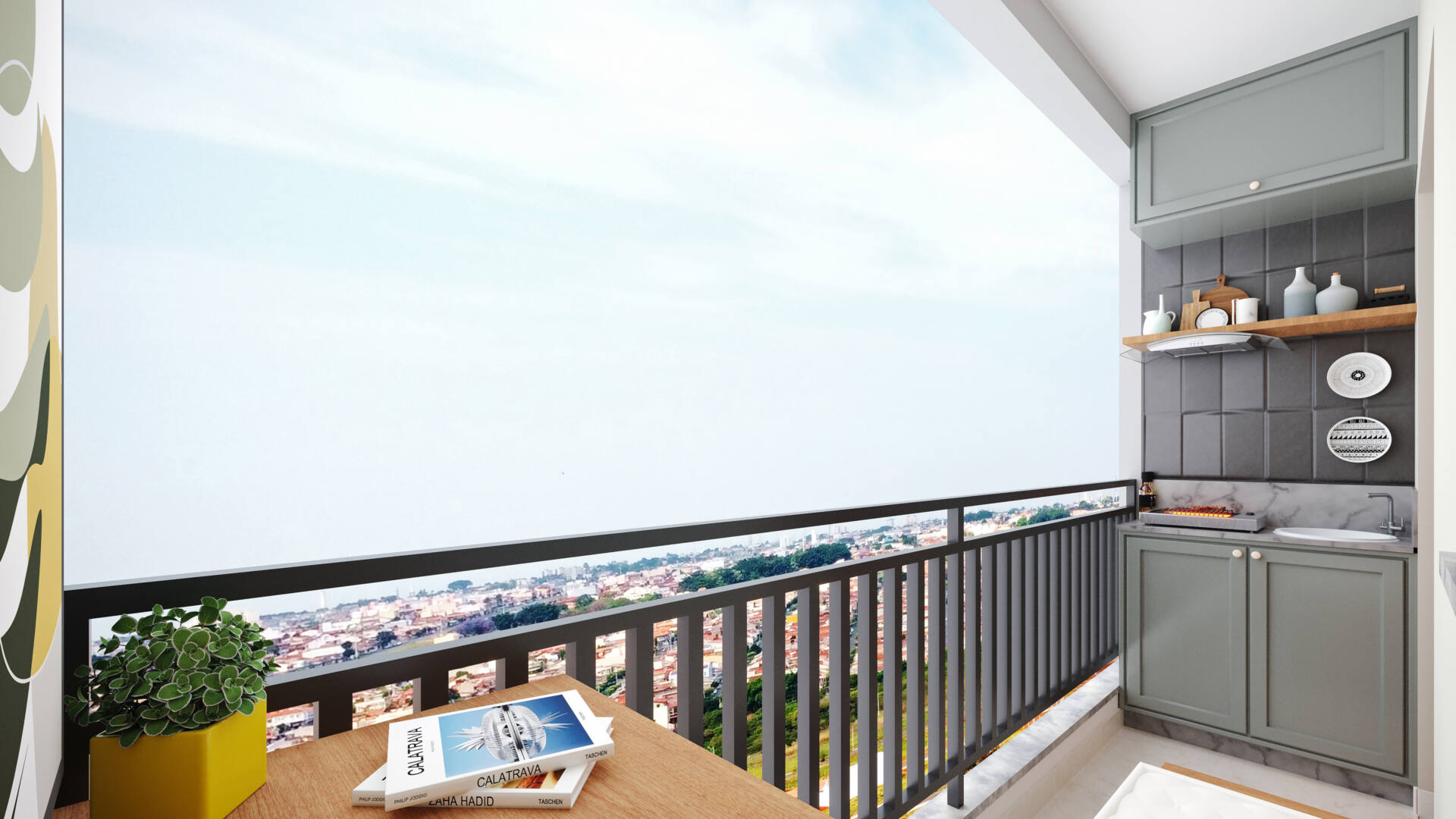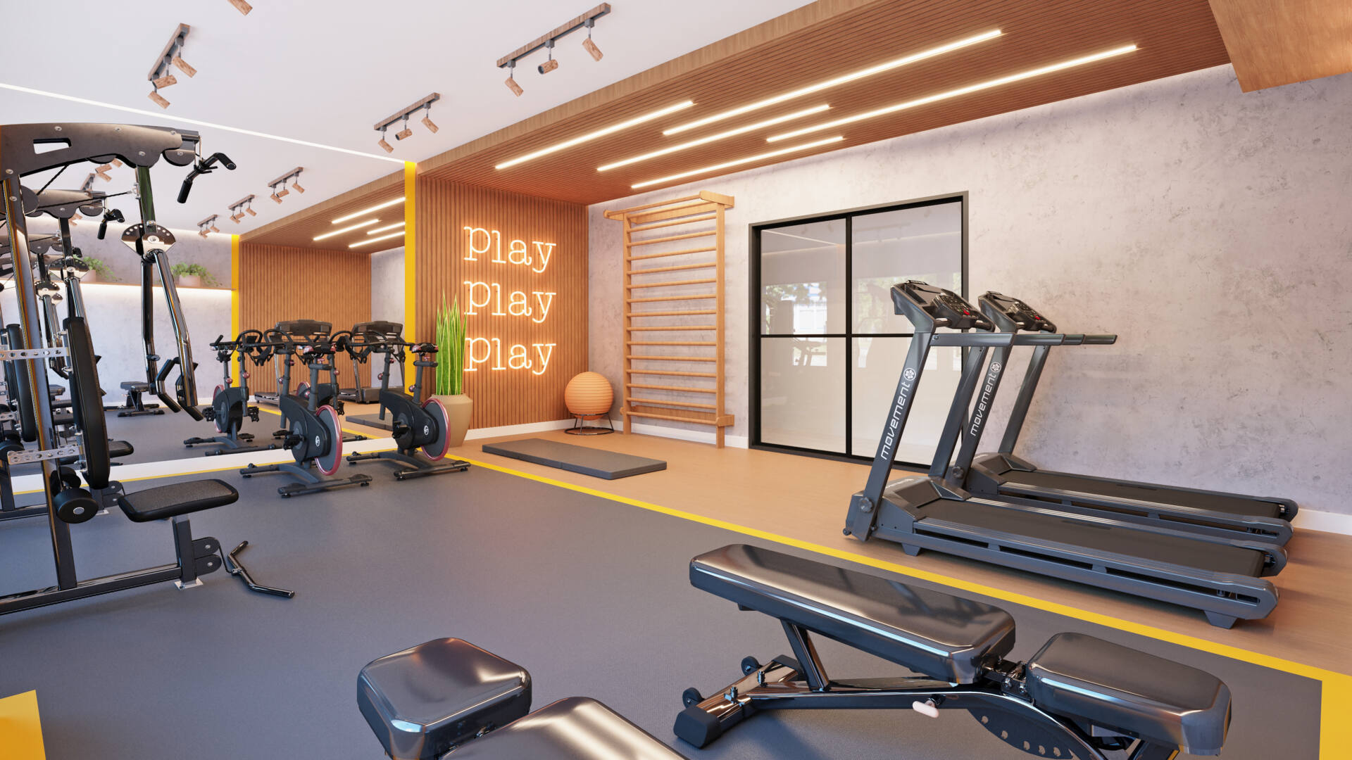 Os apartamentos de 55m² e 56m² possibilitam plantas de 2 dormitórios, sendo 1 suíte, varanda gourmet já equipada com churrasqueira a gás e bancada, além da opção de 2 vagas de garagem e 2 elevadores. Sem contar a quantidade de lazer no térreo para toda a família: playground, pet place, academia, salão de festas, lounge, piscinas adulto e infantil e área gourmet para churrasco.